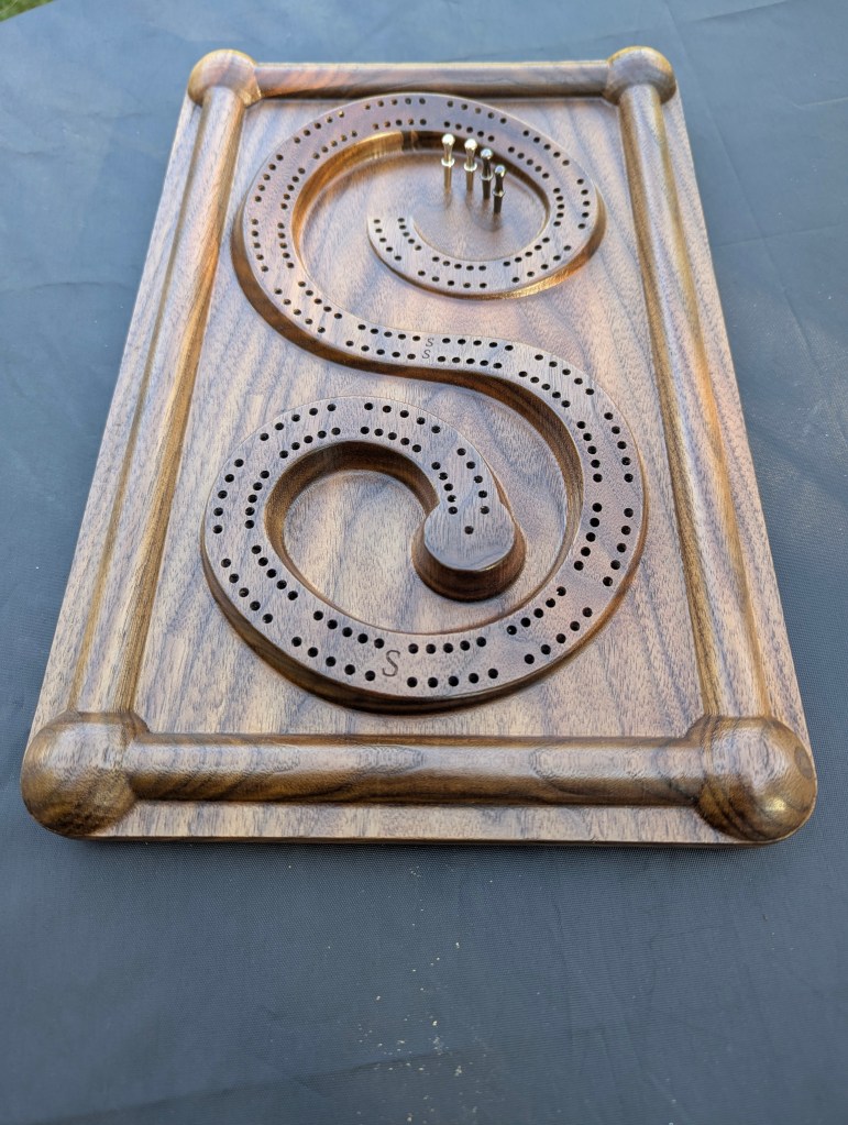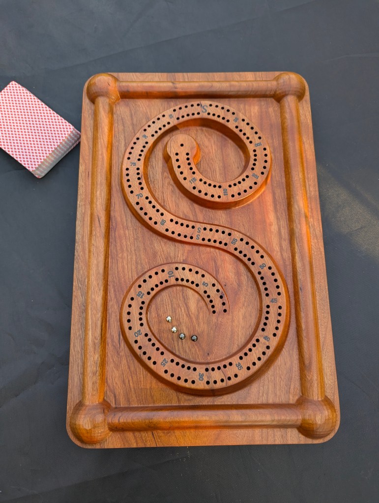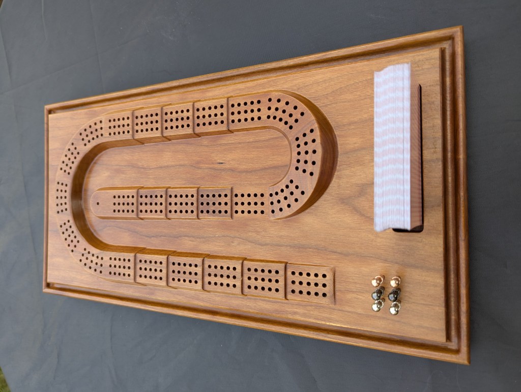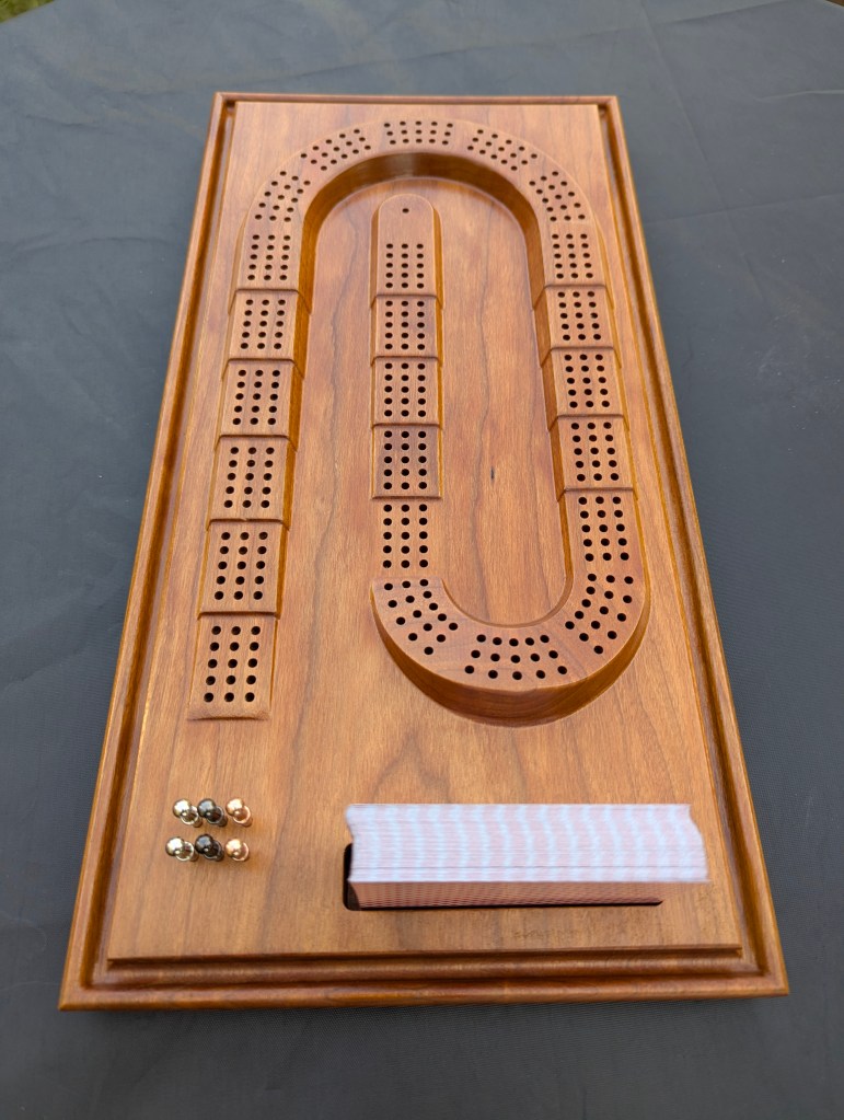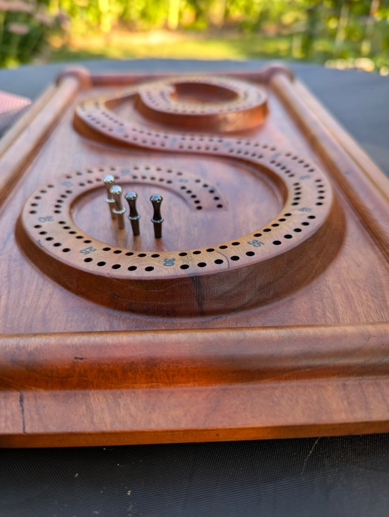 It has always been a goal to create 3D crib boards. Tools for 3D design have come a long way since I programmed my first board manually ( and in steel). I am thrilled with the process of exposing the beautiful wood grain in cherry, walnut, and maple. I love the game, the luck, the skill, and the table chatter I learned from my brothers.